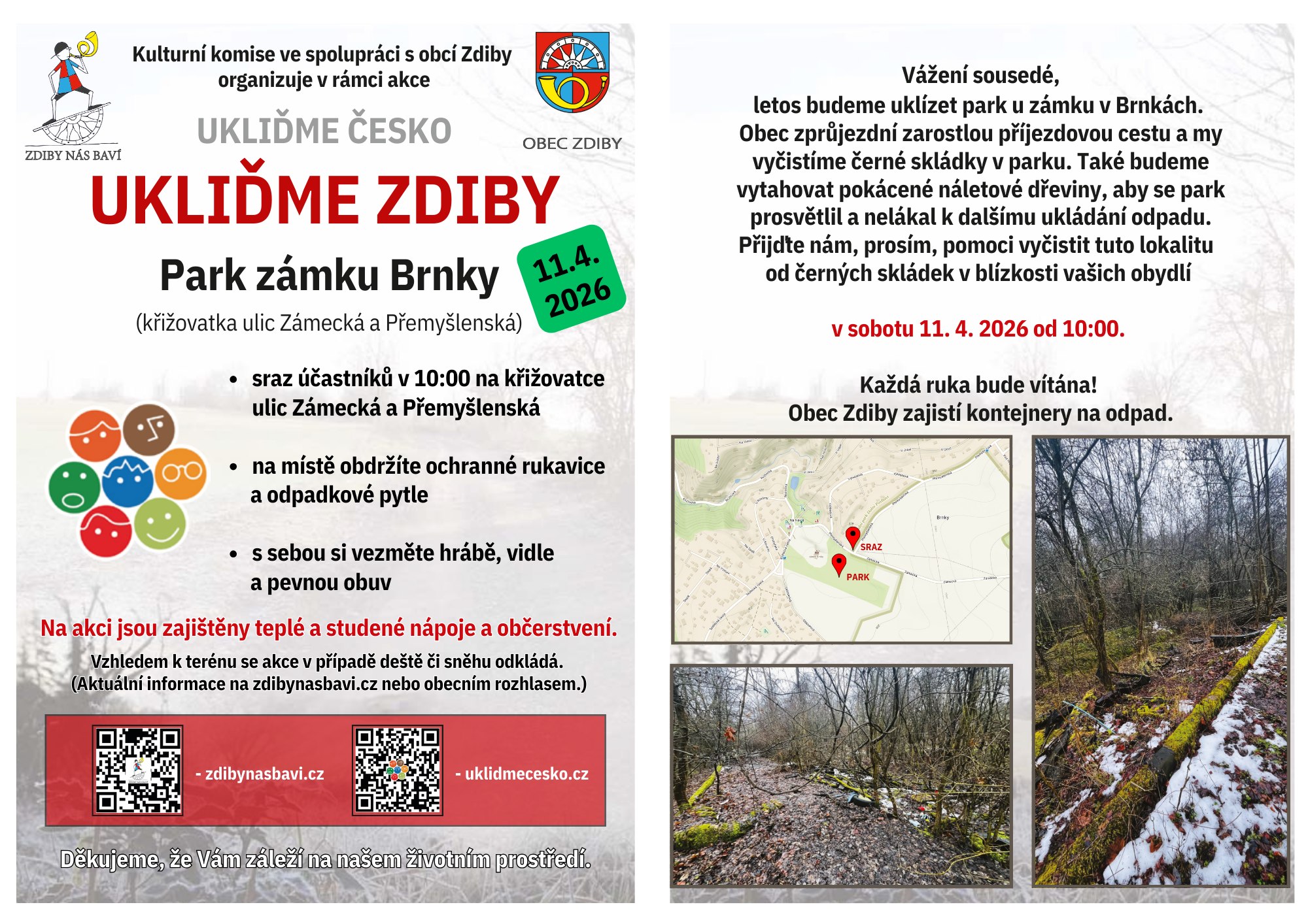 připojte se k nám – letos budeme uklízet park u zámku v Brnkách (křižovatka ulic Zámecká a Přemyšlenská). Lokalitu vyčistíme od černých skládek a náletových dřevin.